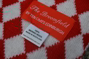 - A luxury merino wool scarf, The Broomfield - comprising red and white diamonds - is named as a tribute to the endearing old ground Airdrieonians called home between 1892 and 1994.